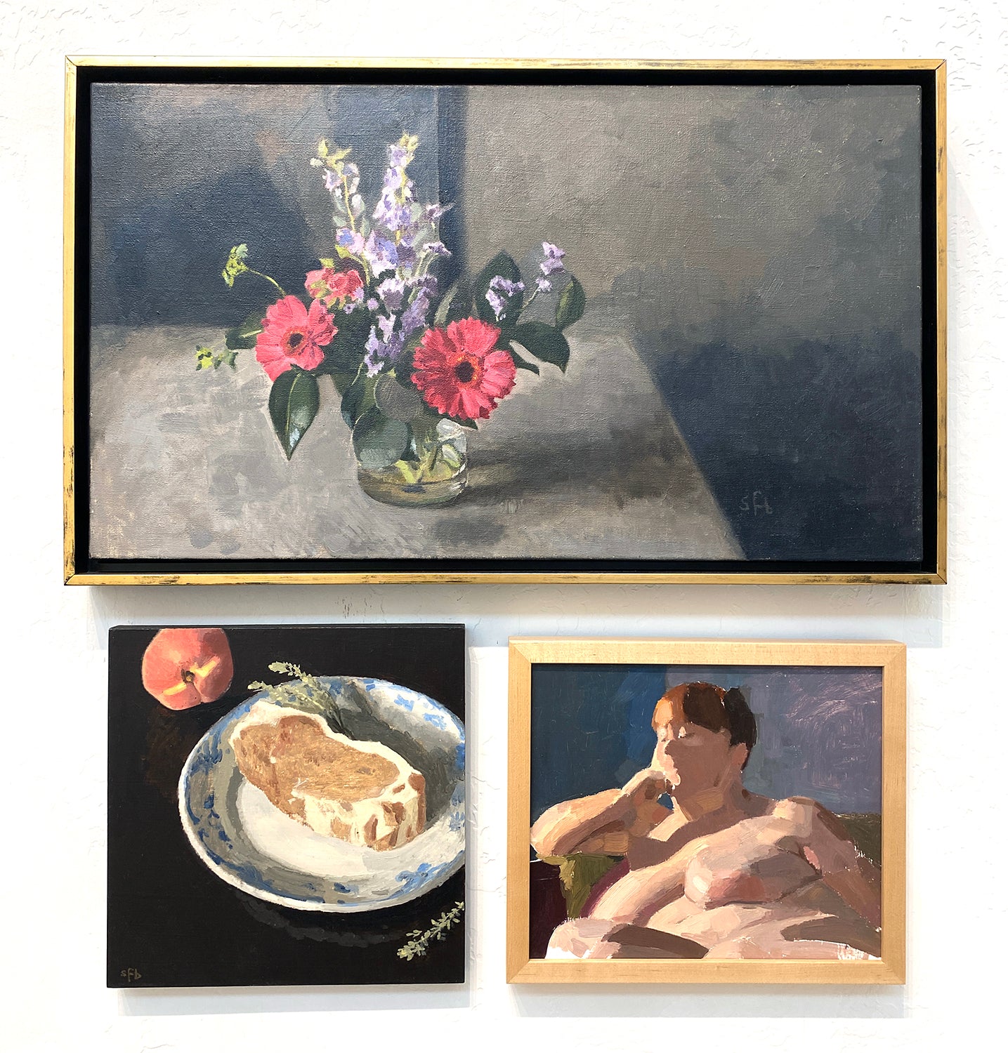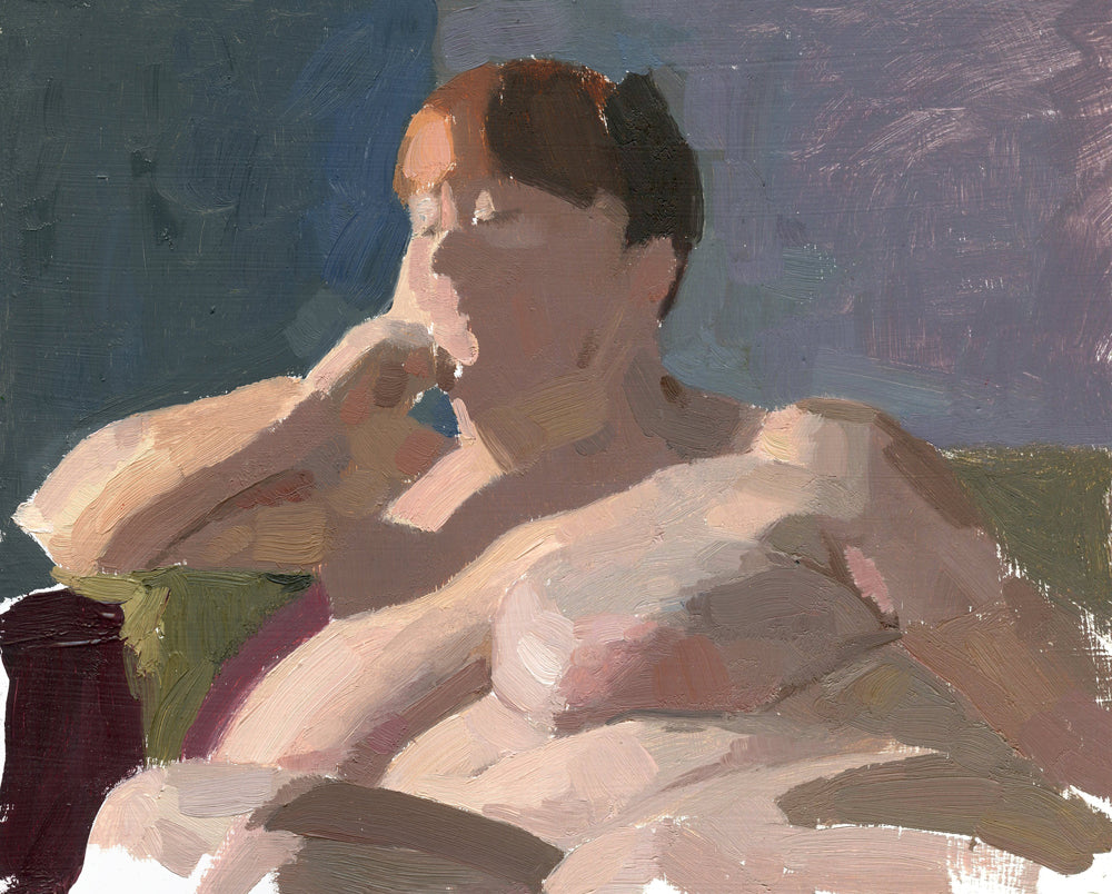 Original oil painting of abstracted nude female. This framed painting measures 11" x 13".