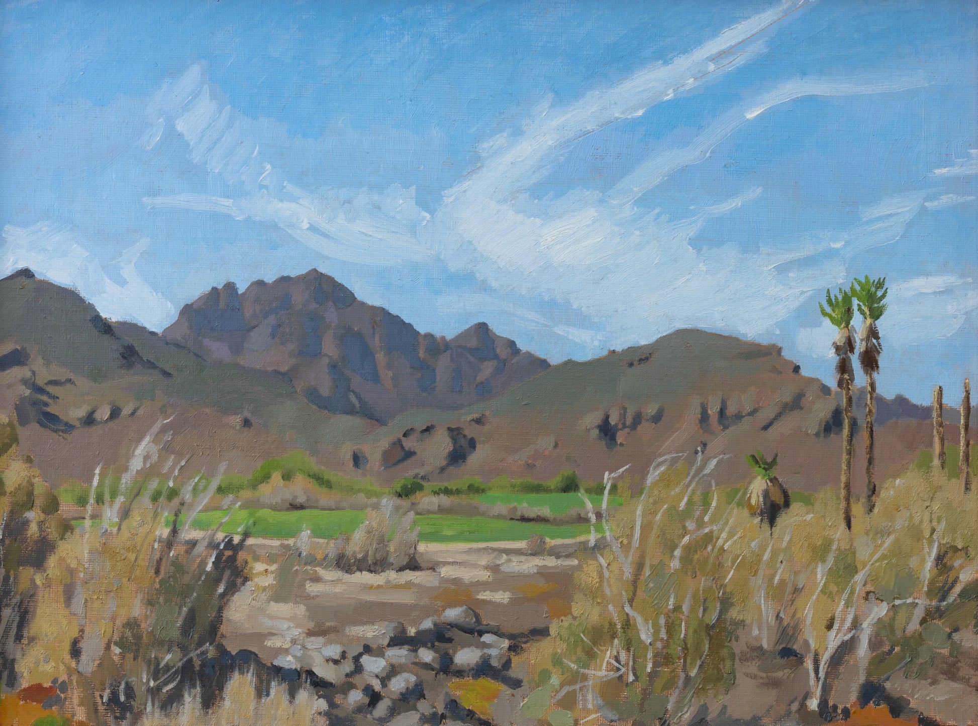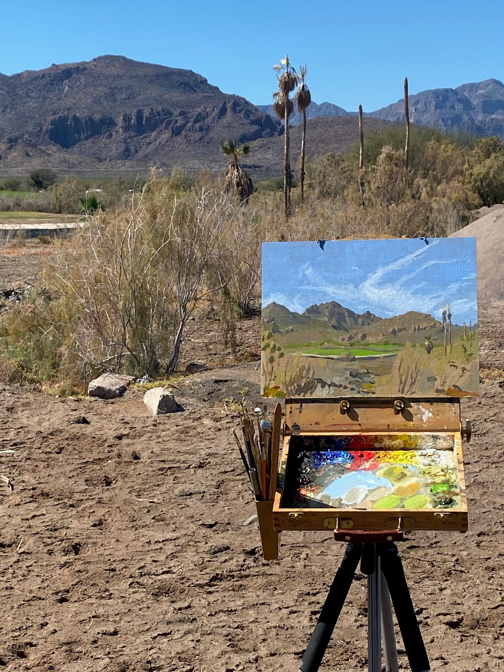 Original oil Painting of the land surrounding the Sierra De La Giganta Golf Course near Loreto, Baja Sur, Mexico by Sarah F. Burns